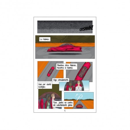 Historieta digital de ciencia ficción que narra y muestra con distintos estilos gráficos una ventana a posibles consecuencias por la crisis climática y los esfuerzos de los seres humanos por salvar su civilización.